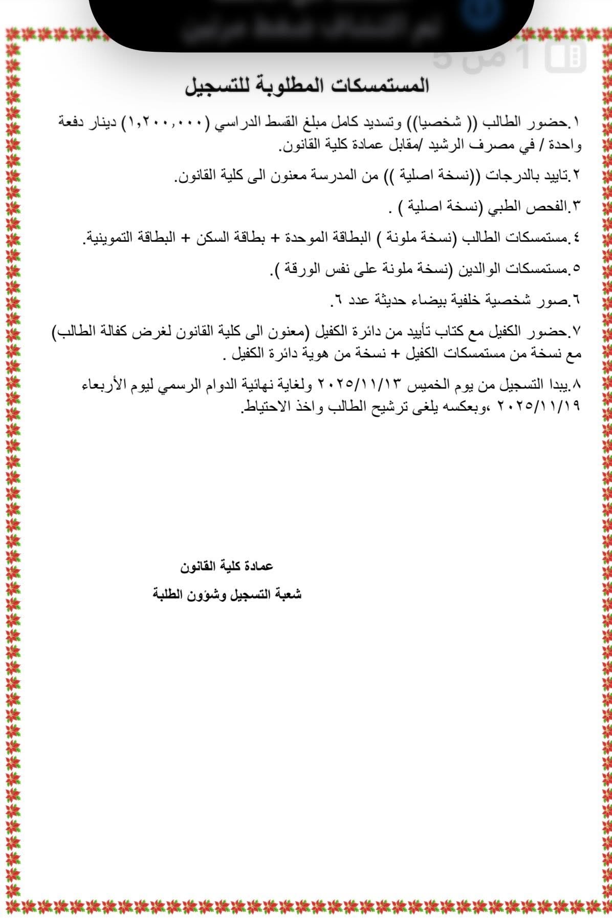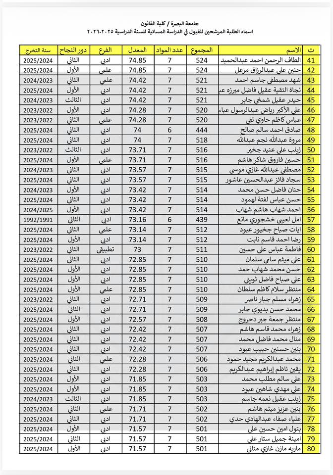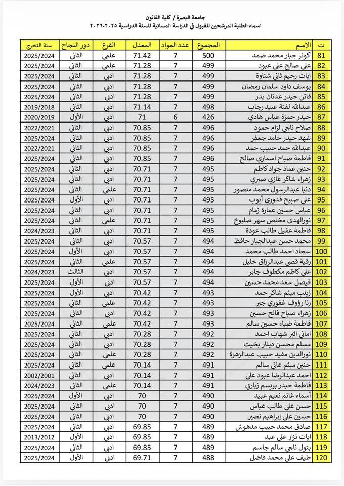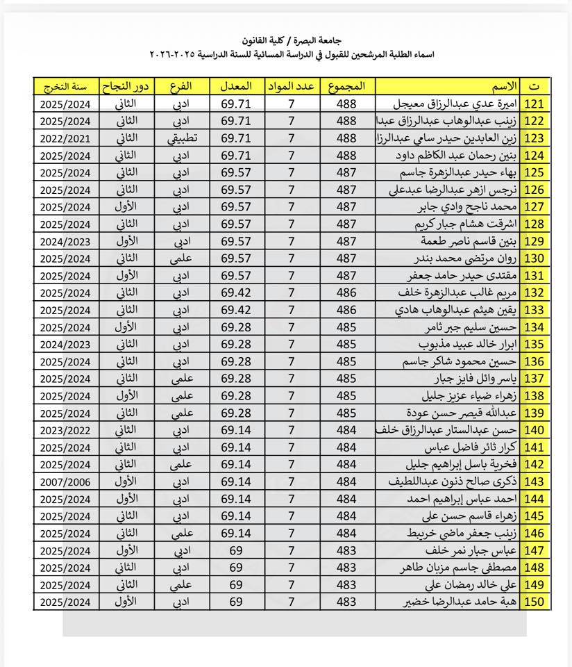 Evening study admissions for the academic year 2025–2026
